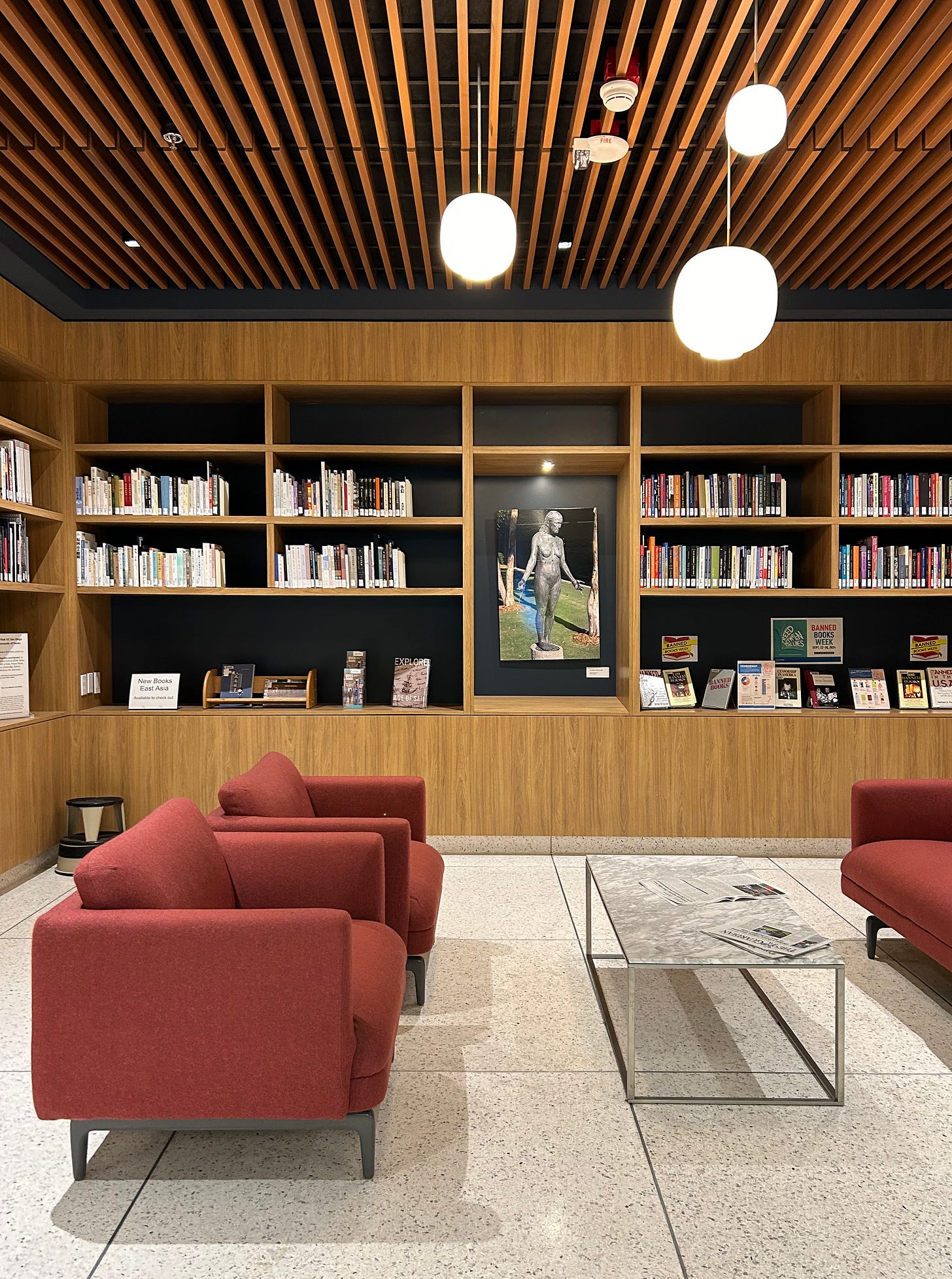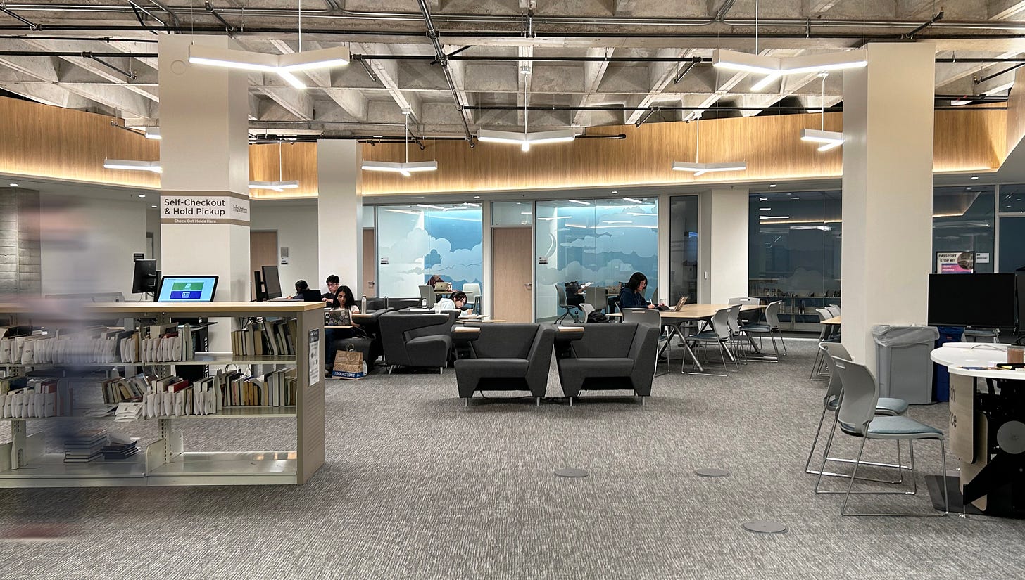 This past weekend, we were in San Diego for a quick get together with longtime friends, and we had a chance to visit one of our experiential design projects that was recently completed at UCSD’s Geisel Library. The brutalist-meets-futurist building by architect William Pereira is iconic on campus, with it’s unique stacking profile, mirrored glass and sunken spaces. Working on a project there has been a long-time dream of ours, and creating practical and beautiful spaces there is a privilege.